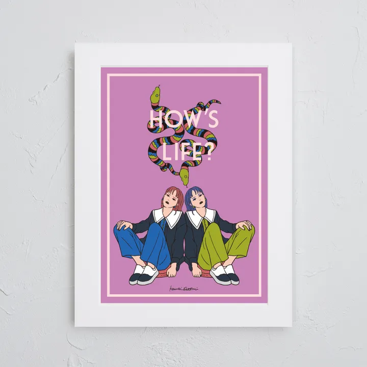 アーティスト -PROFILE- Satomi Kawai(サトミ カワイ) イラストレーター&グラフィックデザイナー 女子美術大学デザイン学科卒業 デザイン会社での勤務経て2015年フリーランスに。 ちょっとシュールで小洒落たイラストを描いています。 【作品について】 様々なことが起こる人生、楽しめてる? 作品名:HOW'S LIFE 手法:イラスト、デジタル ペーパー:高品質半光沢紙 マットカラー:白 マット*:DXホワイト芯 100%バージンパルプ/PH7・中性紙(2mm厚) ※全てのアートにマットがつきます フレームカラー:黒、白、無垢(3種類から選択) ※マット付のため通常とはフレームサイズが異なる規格となります。 【マット*とは?】 アートポスターの周りに挟んだ厚紙の事。 マットを使わない時に比べ余白により広がりが生まれ、作品の新たな一面を引き出せ作品の見栄えがグッと良くなります。また、額縁のガラス面と作品が直接触れたままにしておくと、くっついて作品を傷つけることがあります。マットを使用することでガラスと作品の間に空間ができ、作品を保護することができます。ブランドコンセプトにより全てのアートにマットがつきます。 ー ファッションのようにアートを ー 私達が掲げるコンセプトです! 毎日着替えるファッションの様に、アートも気軽に飾り変えて欲しい... 一旦飾り終えたアートにも光を当ててほしい... ポスター単体、またはリピートで中身だけのポスターを購入された方に"専用のハンガー"をセットでお届け。 「今までに無い!新しいアートの飾り方を提案」 飾る事がなくなった前のアートをハンガーにかけて洋服と一緒にかけてもらう。 その日の気分や、モチベーションですぐに取り換えられる様に。 もちろん、魅せる収納としても今までにないおすすめの飾り方です。