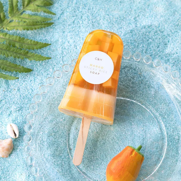 日本初上陸のタイのソープ&スキンケア商品ブランド「COSMOS&HARMONY」 見た目も香りもこだわったアイスキャンディーのような手作り石鹼です。 手で泡立てればきめが細かくなめらか、そしてスポンジを使うとふんわり優しい泡に・・・。 洗ったあとはしっとり、心地良い。 カラフルな色合いでバスタイムをより楽しく彩ります。 お部屋に置いて、香りを楽しむのもおすすめです。 お友達や大切な方へのプレゼントにも♪ 【 6つの香りのソープ 】 ・スイカ みずみずしく甘い香り ・ミンティ ハッカキャンディのようにスーッとするスッキリした香り ・マンゴーもち米 芳醇な甘みがトロピカルな印象の香り ・レモネード ほど良い甘さと爽やかさが心地よい香り 使用可能箇所:手・体 枠練 化粧せっけん ※表示数量を超える在庫や、詳しい納期につきましてはメッセージよりお問い合わせください。 ※初回のご注文に限り1セット~送料無料となります。ご注文時には送料が含まれますが発送時に無料に変更いたします。