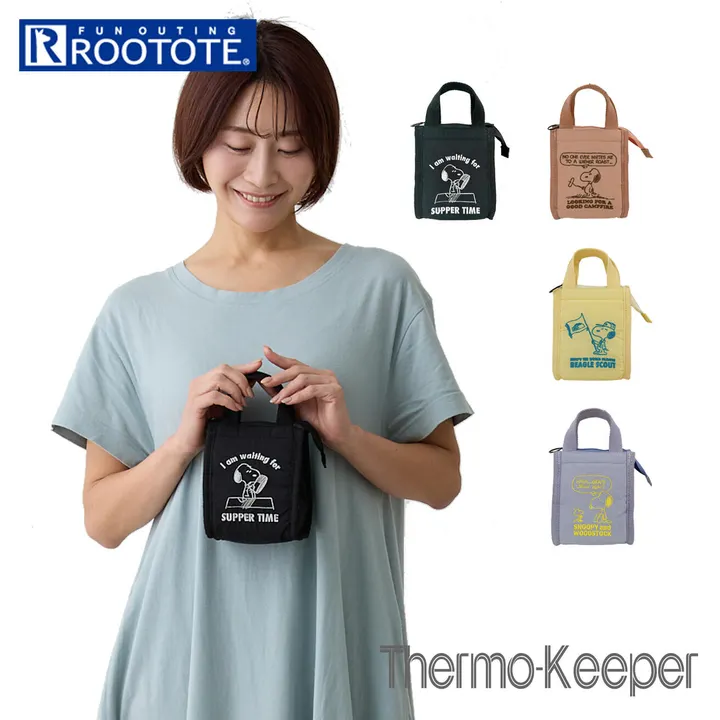 PEANUTSデザインがROOTOTEになりました。 愛らしいスヌーピーデザインが気分を高めてくれます。 “クール”なルートート。 PEANUTSのコミックから美味しそうなシーンをセレクト! サーモキーパーを持って、FUN LUNCH♪ 簡易保冷機能付きルートート「サーモキーパー」。 インナーポケットに保冷剤を入れてご利用いただけます。 おにぎりやゼリー飲料の持ち運びに便利なミニサイズ。 暑い季節には、溶けやすいお菓子やコスメを収納してポーチ代わりにも! 口元はファスナー開閉。 指をかけて開閉しやすいリング状の引手が付いています。 本体はクッション性があり、ふわっと軽い仕上がり。 背面には、メッシュ素材のルーポケット付き。 デイリー使いだから、いつでも清潔に。 洗濯可能で、衛生的にご利用いただけます。 *洗濯の際は、ネットに入れて弱水流で洗ってください。 素材の特性上、他の素材と密着したまま放置すると色移りする場合がありますのでご注意ください。