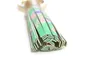 ■「手描友禅染を身近に!」 この作品は、手描友禅の「絵画を纏う」というコンセプトの基で 「染工房正茂」と「布と糸のクラフトジュエリーSextile」との コラボレーションで制作したものです。 友禅染をより身近に親しんでいただけるように和装でも洋装でも 楽しめる作品作りを目指しました。 普段使いから華やかな場所まで幅広く使える一品 おしゃれのアクセントに! ■縁起の良い柄 孔雀柄は縁起が良い柄とされています。 孔雀は邪気を払う鳥と言われ子孫繁栄など縁起の良い柄とされています。 この作品では、孔雀の羽根を金線で表現し、くるっと一周すると柄が繋がるデザインにしています。 ※作品により誤差はあります。ぴったりと柄が繋がるわけではありません 途切れずつながるデザインはデザイン的にも縁起が良いものとなっています。 ■洋装でも和装でも 洋装にはもちろん、和装でも柄に親和性があるので違和感なくお使いいただけます。 お着物に和風バッグは定番ですが、洋風バッグもお持ちになることも多いと思います。 そんな時でもこのチャームのように和柄に親和性のあるものならコーディネートがぴったりはまります。 季節を問わず使っていただけます。 ■端切れではなくこのアクセサリーのために描いています 着物には縫い合わせでも柄が繋がる絵羽模様というものがあります。 それを連想させるようにくるっと巻いた終わりの部分でも柄が繋がるようにデザインしています。 ■1枚1枚丁寧に染めています プリントではなく刷毛や筆で染めていますので、一つ一つ筆のタッチや染まり方が違います。 柔らかな暖かみといったものを感じさせるプリントにはない味わいがあります。