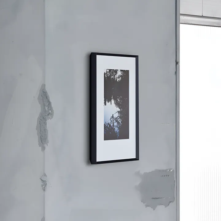 「CUT」と名付けられたこの製品はその名の通り、エッジを切り落として、シャープな印象を携えた額縁です。 シンプルな額縁にあるそれぞれの面がカットされたような形をしています。 このことより、正面から見た時は額による影が作品に落ちず、 額をあまり意識する事なく作品に集中する事が出来ます。 さらに、斜めから見た時は側面が面取り(カット)されているため、 壁面から浮いた様な軽やかな印象と品のある額縁となりました。 「マットブラック」の表面はショットブラストを採用しマットコーティングを施す事で、 アルミの素材感と高級感を演出しています。 シンプルで、品のあるものを望まれる方には最適な製品です。 2019年グッドデザイン賞受賞、「DFA design for ASIA 2020」受賞