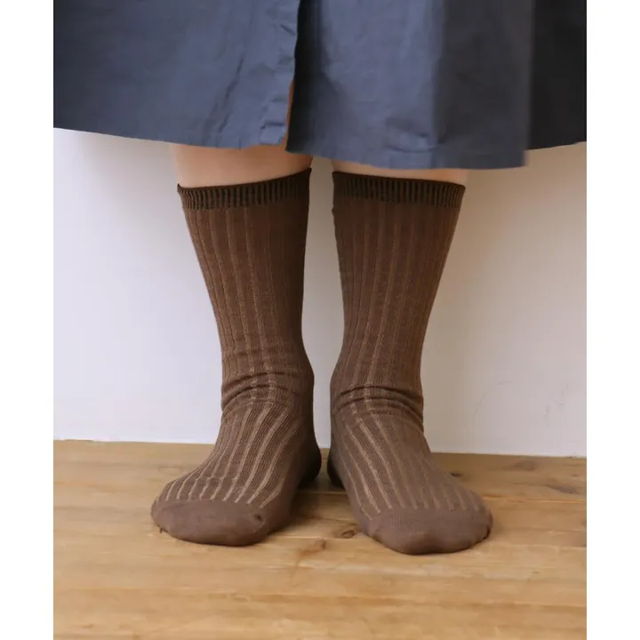 【1Pソックス】リネンコットン リブクルーソックス【レディース】 30 ブラウン Sサイズ:22.5-24.5cm