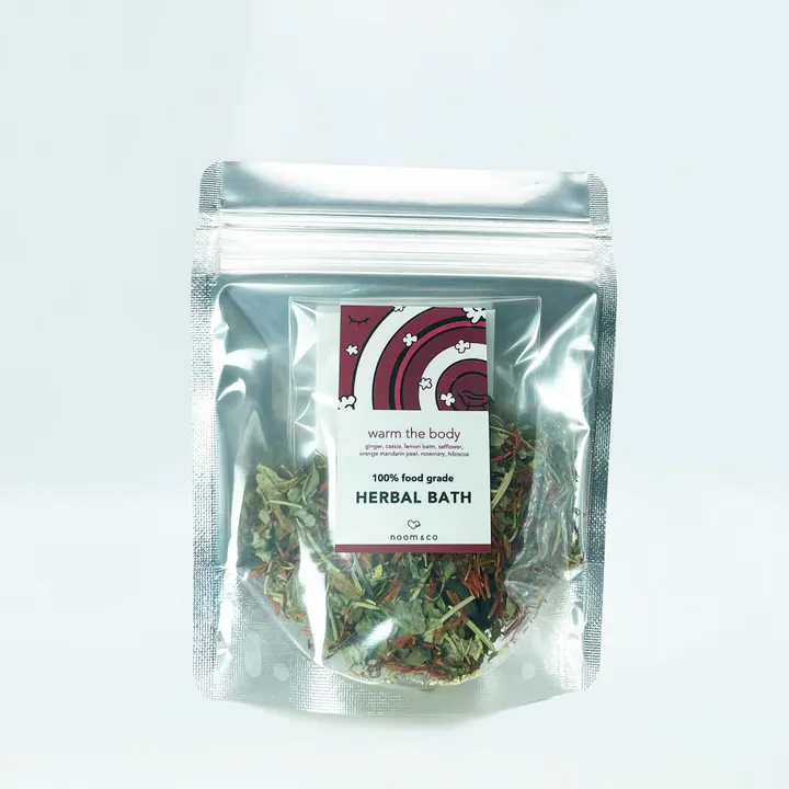 ※飲み物ではありません。入浴、手浴、足浴にお使いください。 mage of the INNER CYCLE 100% Food Gradeハーブ入浴剤 現代女性が日常的にかかえている不調に寄り添っていくために。心と身体に安らぎをもたらすのをイメージし、様々な食品用ハーブから厳選し、ブレンドいたしました。 【身体が冷えやすい方におすすめ】 過度なストレスによっておこる自律神経の乱れ。 血圧低下や体温低下で、「身体が冷えている」と感じた時に…。 ジンジャーの温かさのあるスパイシーな香りと、 桂皮の心安らぐシナモンの甘い香りで、 やさしく温め、包み込むようなイメージをしたブレンドです。※ ※香りの強さ、感じ方には個人差がございます。 <blend herb> ginger / ジンジャー cassia / 桂皮 lemon balm / レモンバーム safflower / サフラワー orange mandarin peel /オレンジ マンダリン ピール rosemary / ローズマリー hibiscus / ハイビスカス ※植物の力の詳細は下記のURLへ。 https://noomandco.shop/?mode=f5 1983年4月創業のハーブ専門店「カリス成城」さんは創業当初は新種の業態としてメディアの取材も多く、日本初の“ハーブ”情報の発信源として注目を集めてきました。 現代女性は日常的に大きくは6つの不調を抱えています。 (1)寝つきが悪い。 (2)身体が冷えやすい。 (3)身体が緊張してこわばってしまう。 (4)疲れやすい。 (5)イライラしがち。 (6)女性ホルモンのバランス乱れ。 この6つの他にも様々な不調があるかと思います。 女性の不調に寄り添っていきたい。そして、心安らげる入浴タイムになってほしい願いから、「カリス成城」さんが世界中の産地から厳選した中から食品グレードのハーブを採用し、完成したのが「HERBAL BATH(ハーバルバス)シリーズ」です。 女性特有の悩みをイメージした6シリーズを展開しています。 (1)restful sleep (2)warm the body (3)relax one's muscles (4)protect yourself (5)deep breath (6)beautiful balance <使用方法> ❶ 家庭用の浴槽にバスパック1袋入れて沸かしてください。 *付属でついている、商品専用のバスパックに全てのハーブを詰めて、しっかりと紐を結んでください。 ❷ <給湯式>の場合や<香りやお湯の色の変化を楽しみたい方>は 下記の<おすすめの使用方法>で使用してください。 ーーーーーーーーーーーーーーーーーーーーーーーー <おすすめの使用方法> ○お鍋に500mLの水を入れ沸騰させます。 ○沸騰したら火を止め、バスパックを1つ入れます。 ○お湯に色がつくまで、ゆっくりかき混ぜてください。 ★そのまま置いておくとお部屋に優しく香りが広がり、お部屋でも癒しの時間が楽しめます。※ ○お風呂にたまった湯船に液を入れる時の色の変化も楽しめます。 ※ 香りの強さ、感じ方には個人差がございます。 ーーーーーーーーーーーーーーーーーーーーーーーー ❸ 大きな浴槽でご使用になる場合は、お好みで2~3袋をお使いください。 ❹ 手浴、足浴にもお使いいただけます。 ❺ お湯に浸かりながら、バスパックを両手でそっと包み、鼻のそばまで持っていき、深い呼吸をしていただけるとさらに癒しの時間が楽しめます。 * 飲み物用として開発されたものではございません。 * 妊婦さんや乳幼児用として開発されたものではございません。ご使用はお控えていただくか、お医者様へのご相談をお願いいたします。 * 細かいハーブ がバスパックより出てしまうことがございます。お風呂のお湯を流すときはご注意ください。 * ハーブは天産物です。栽培地の環境によって色や形状が違う、香りやお風呂のお湯の色が違って見える場合がございます。予めご理解賜りますようお願い申し上げます。 * 入浴後はお湯や使用したバスパックの早めの処理をお願いします。浴槽や洗面具などにハーブの色素が付着することがあります。 <使用上の注意> ●お肌に異常が生じていないかよく注意して使用してください。傷・湿しん等、異常がある時は使用しないでください。 ●使用中、赤み・かゆみ・刺激等の異常が現れた時は使用を中止し、皮フ科専門医等へのご相談をおすすめします。また、使用中に気分が悪くなった時は、使用をおやめください。●天然のドライハーブを使用していますので、残り湯や使用したバスパックを放置したままにすると、浴槽や洗面具などにハーブの色素が付着することがあります。入浴後は早めにお湯を流し、洗い流してください。●色素が付着してしまった場合は、洗剤などで洗い落としてください。●残り湯を洗濯などに使用しないでください。●バスパックを強く絞ると袋が敗れ、中身が出てしまうことがあります。●お風呂のお湯を流す時にはハーブが湯船に落ちていないかをよくご確認してから流してください。●日光の当たる場所や高温多湿の場所で保管しないでください。 ●乳幼児の手の届かないところに保管してください。 ●妊婦さんや乳幼児用として開発されたものではございません。使用はお控えていただくか、お医者様へのご相談をお願いいたします。