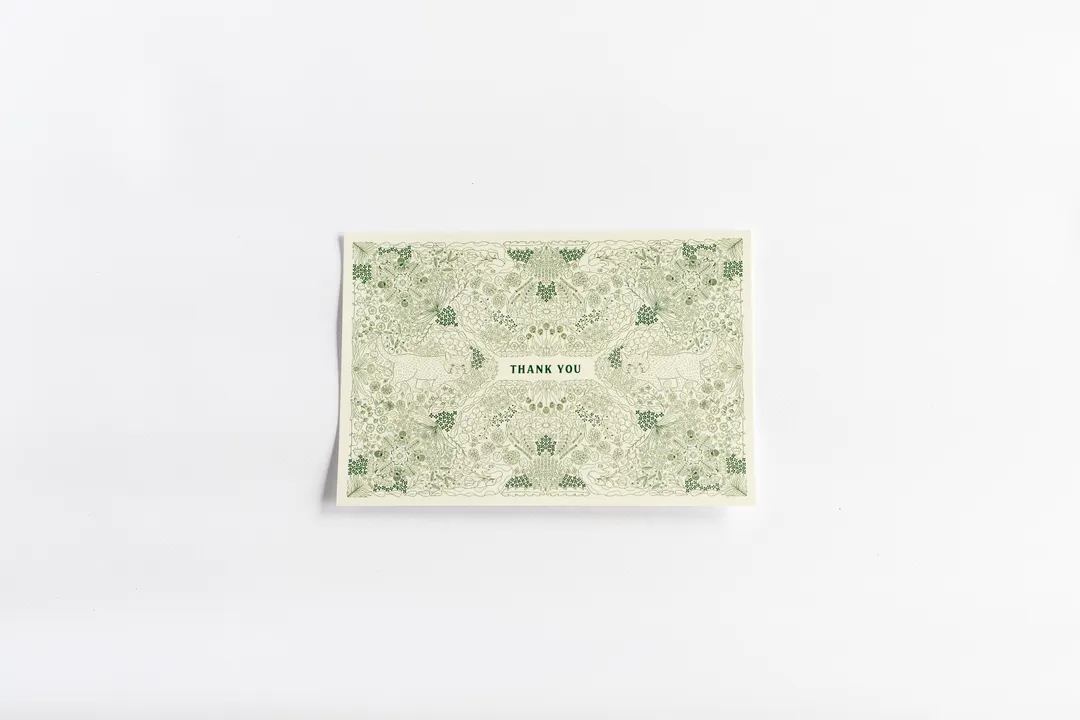 山猫瓶詰研究所のオリジナルポストカード *THANK YOU ちょっとしたお土産にもお礼のプレゼントにも、そっと添えやすいポストカード。万華鏡を覗き込んだような繊細な線画デザインです。いつもは照れくさくて言いにくい言葉も山猫と一緒に届けてみませんか。 ※ご覧いただく環境により実物と色味が異なる場合がございます。予めご了承ください。