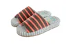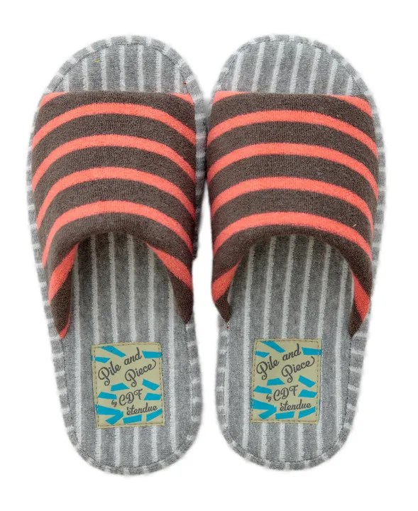 絶妙なカラーバランスのしましま生地のアッパーとインソールを組み合わせた、カジュアルでポップなデザインのスリッパ。 パイル生地ならではの心地よい脚触りと、発色の良さが足元を明るく彩り特別な一足に。 是非素足で履いていただきたいスリッパです。 足裏に沿った凹凸形状の厚底ソールは、中材が低反発素材になっており長時間履きに適しています。 2サイズ展開ですので、カップルや家族で色違いにできます。
