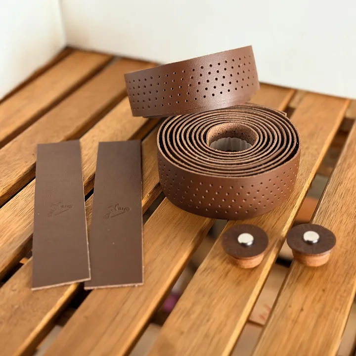 ----本革を使用した国産バーテープ ---- 自転車のドロップハンドル用のバーテープです。 手になめらかに馴染む柔らかな革が、長時間のライドでも手首の疲労を軽減します。 厚みは1.6~1.8と従来品より厚めなため、クッション性に優れています。 ----こだわりのエンドキャップ ---- 本革を重ねて作られたエンドキャップには「CuieVelo」の刻印。 フィニッシュテープ フィニッシュテープにも刻印があり、こだわりぬかれた一品となっております。 ----CuirVeloオリジナルレザー---- 兵庫県姫路市のタンナーより別注のオリジナルレザーを使用。