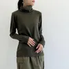 【日本製】ウォッシャブルウール_ハイネック長袖ウール モスグリーン 1-2サイズ