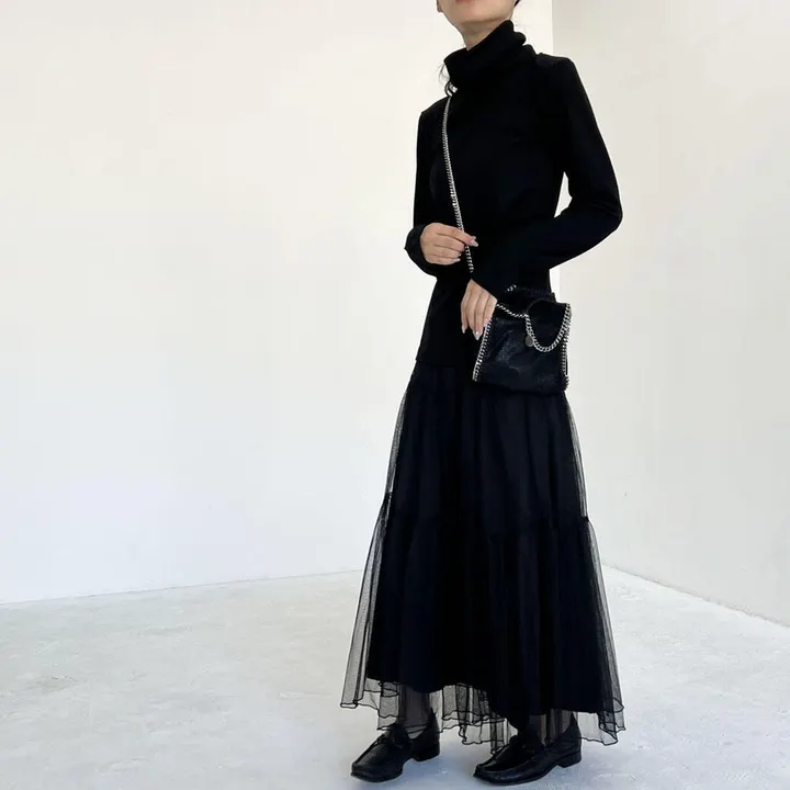 【日本製】ウォッシャブルウール_ハイネック長袖ウール ブラック 1-2サイズ
