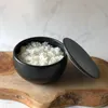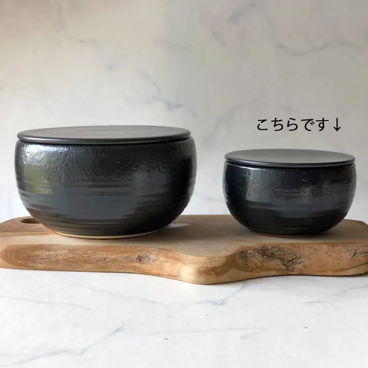 シックで使いやすいおひつです。 炊き立てのご飯をおひつに保存しておき、冷めてしまったら電子レンジで温めが可能。 フタがフラットで重ねやすい形状です。 多孔質土の無数にある細かい気孔が、ご飯の水分を吸収したり、放出したりして水分調整を行い、 ごはんの乾燥を防いでもちもちの美味しいご飯を保存できます。 陶器のお櫃はご飯の臭いを吸収し、黄ばみも臭いも防いでくれるので、風味を損なわない美味しいご飯が保存できます。 また木製と違い、カビにも強く、お手入れも簡単なのが特徴です。 おひつごとレンジで温めることができ、いつでもふっくらモチモチ炊きたてご飯をよみがらせてくれます。 サイズは1合または2合、それぞれに白と黒のラインナップです。 【 土物製品の特徴と使用上の注意 】 多孔質土は吸水性の高い土を使用した硬度の低い物が多くあります。 ご使用につきましては以下の点にご注意下さい。 * 食品の入ったまま長時間放置しないで下さい。シミ・におい移りの原因となります。 * ご使用後はすぐに洗浄し、水分を良く拭き取った後十分に乾燥させて下さい。   臭いやシミ・カビの原因になります。