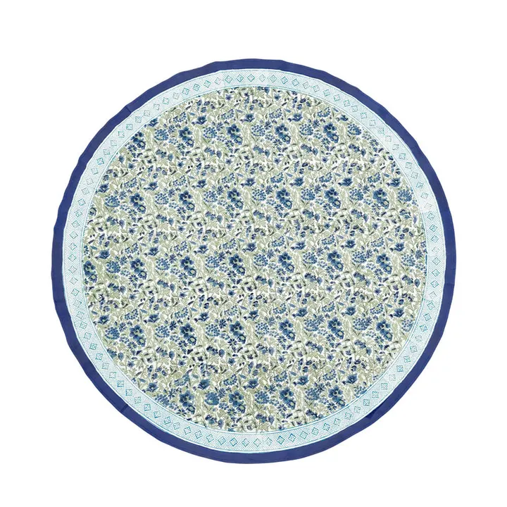 「カリーノ」は「かわいらしい」という意味。心ときめく配色と素朴な花柄が毎日を彩ります。 インドの伝統技法「ブロックプリント」でデザインされた、ボタニカル柄のラウンドクロス。 テーブルに敷けば華やかなデザインで食卓をぱっと明るくします。 円卓だけでなく四角テーブルに敷いてもオシャレです。 「ブロックプリント」は木版を使って、職人がひと版ひと版、手でスタンプを押すように生地の上にプリントするインドの伝統的な技法です。
