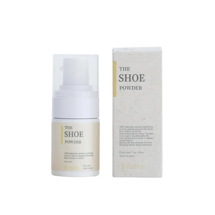 靴のニオイ 原因菌から除菌・消臭/100%天然由来成分 家族で使える靴用消臭パウダー Amazonで大人気の「靴の消臭粉」を【タルク不使用】でスプレー噴霧できるよう商品開発に成功。 天然由来成分100%かつ、タルクフリーの消臭粉で子供(1歳以上)から大人まで家族全員の靴に使用可能。 スプーンですくう手間が無い、ダマにならないから使いやすく、ミョウバンを主とする独自パウダーで消臭効率も抜群に向上しています。 独自開発スプレーは捨てる際ガス抜き不要!ゴミ捨て楽々。また、詰め替え用購入で容器のリユースにも。 革靴や運動靴、ブーツなどあらゆる”履き物”に1年中対応。インテリアに馴染みやすいデザインも特徴的。 洗う前に、一度こちらのお手軽”シューパウダー”を是非ともお試し下さい。 ■家族の日常に寄り添うデイリーライフスタイルブランド「fafra」 『日々使う事が楽しみになるアイテムで、家族の日常をより素敵なものに』 fafraはライフスタイルではなく「日常(dailylife)」に寄り添う”デイリーライフスタイルブランド”として、機能性、価格、デザインの全てを追求したアイテムを開発していきます。 ■100%天然由来成分の独自パウダー【タルクフリー】 ミョウバン、酸化亜鉛、銀、マイカの天然鉱物で構成された100%天然由来成分のパウダーが、ニオイの原因菌を除菌・消臭。 タルク不使用なので、子供(1歳以上)から大人まで 家族全員の靴に安心して使用可能。 主にミョウバンの除菌効果により、バクテリアを退治。細かな粒子にすることでスプレー噴射も可能になりました。 ■独自開発スプレー 消臭パウダーをスプレーで噴射。ガス抜き不要でゴミ捨て簡単。 ■どんな靴にも使える 靴の中にパウダーを噴射するだけなので、冬のブーツを始め、スニーカー、革靴、お子様の上履きなど、どんな履物にも1年中ご使用いただけます。 ■約130日分使用可能でコスパが高い 帰宅後1日6~8プッシュ使用の場合、 約130日分使用可能で経済的。 小さく見えて長持ちなシューパウダーです。 ■持ち運び、保管にも便利なコンパクト設計 旅行やジム、いざという時すぐに使えるように持ち運びしやすいサイズ感を実現。また保管の際も省スペース。 ■使い続けることでしっかりと消臭効果を発揮 7日程使用するとより消臭効果を感じやすくなります。 その後も継続使用することで、ニオイの再発生も抑制。 デイリーケアとしてご活用ください。