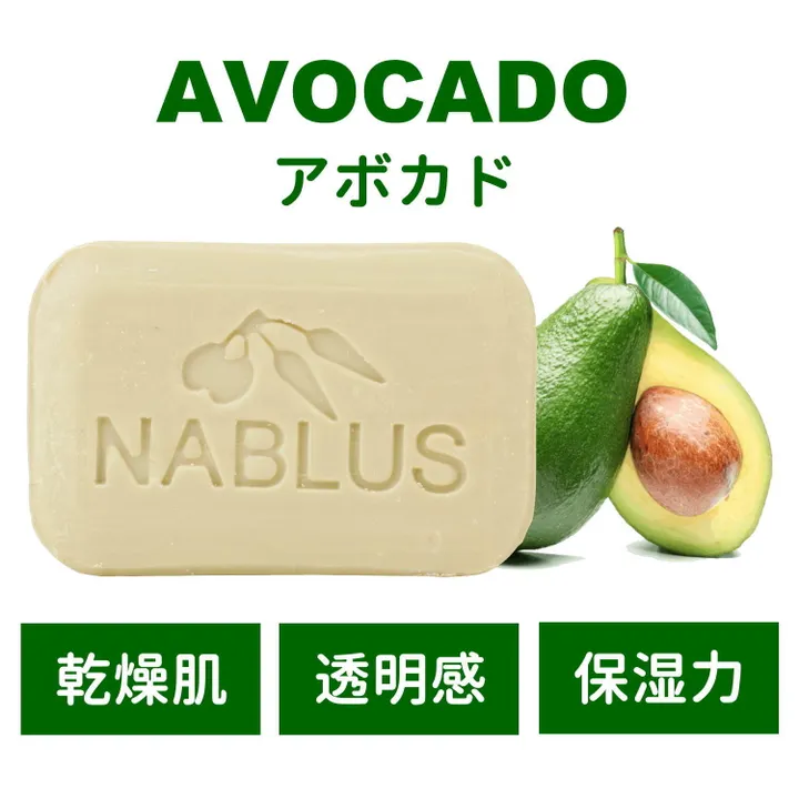 【NABLUS SOAP / ナーブルスソープ】無添加 完全オーガニック石鹸(アボカド)酷い乾燥肌・透明感 100g 48個-