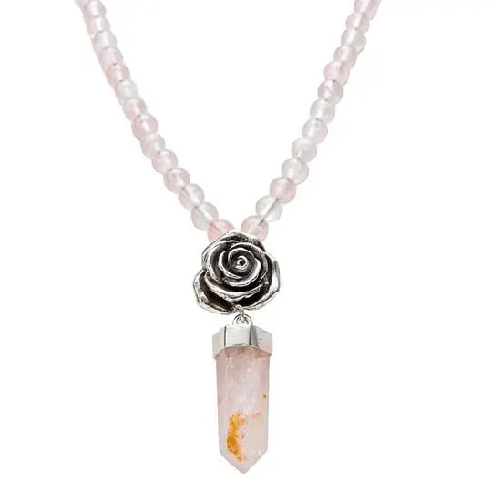 薔薇のチャーム:約2.0cmx2.0cm ローズクオーツポイント:約3.0cm x 1.5cm ネックレス長さ:約84cm