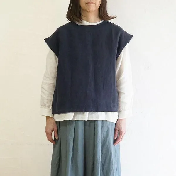 コーデのアクセントになるリネンベスト 【ナチュラルダイド・前後2wayベスト】 冷えやすい肩や背中をカバーし、季節の変わり目の体温調節に活躍してくれるベスト。 前後着用可能な2way仕様で、コーディネートの幅も広がるアイテムです。 方の落ちたデザインが、着こなしに程よいルーズ感をプラス。 リネン100%のナチュラルな風合いも魅力的なアイテム。 カットソーともブラウスとも相性抜群◎ カラーバリエーション豊富で選ぶのも楽しいリネンのベストです。 1/25番ベルギーリネン平織りの天然染め太番手のベルギーリネンを平織りにして、丈夫さと張り感を持たせています。 生地本来の持ち味を生かすため、加工においてなるべく機械や薬品を使わず、染職人が持つ伝統的な手染めの「天然染め」を施し、独特の色と風合いを表現しています。 生地を何度も丁寧に洗いこみ、目を詰まらせ、ふっくらとした厚みのある生地感にしています。 その仕上がりはリネン特有のシャリ感を残しながらも、肌触りのいいベルギーリネンのナチュラル感としなやかな落ち感のある独特な風合いです。 ◆お取り扱い上のご注意◆ ・この製品の生地はナチュラル感を出すため、糸の節目、ネップ、カスを取り除かずそのまま織っています。また、素材の持ち味を生かして自然な風合いに仕上げるため、加工工程上一部折れスジ等がありますが、それらは加工特性のため不良としてカウントしておりませんので、予めご了承ください。 ・色の濃い製品は着用や洗濯時に表面が毛羽立ち色合いが変化、色落ち移染する場合がありますのでご注意ください。 ・漂白剤のご使用は避けてください。 ・洗濯後の脱水は短めにし、形を整えて速やかに干してください。