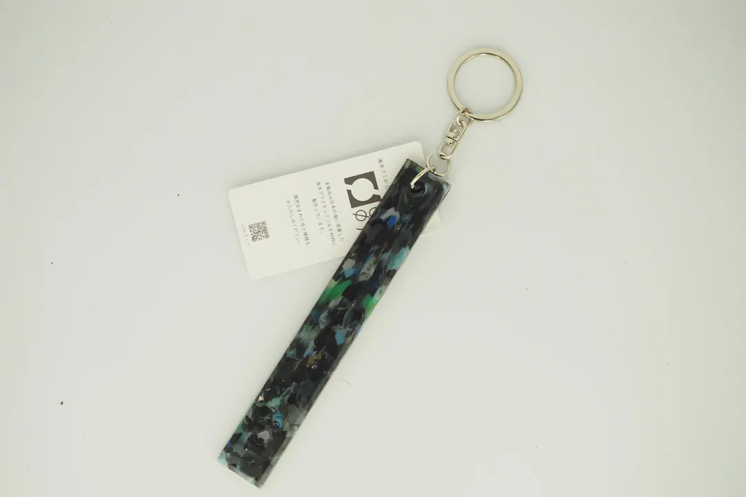 幾何形体モチーフのシンプルなキーホルダーです。 表面にはbuoyのロゴ、裏面にはSDGsの目標キャッチコピー「LIFE BELOW WATER(海の豊かさを守ろう)」が刻印されています。 buoyの製品は全て日本各地で回収された海洋プラスチックごみを材料に作っています。着色などの加工を加えず、偶然海岸に漂着した色味でできています。 明るい発色が特徴のプラスチックですが、複数の色が交じり合うことでちょっと有機的なモザイク模様が特徴です。 製品にはひとつひとつゴミの漂着地域が明記されています。日本で起きている海洋ごみの問題をリアルに感じることができます。 また、商品に添付されているQRコードを読み込むとそれぞれの回収を行ったビーチクリーン団体さんの情報を見ることができます。 ------------------------------------------------------------------- 海洋プラスチックごみを材料に変える独自技術buoyの特徴 (buoyは海洋プラスチックごみ素材使用を前提にした株式会社テクノラボの独自技術により成形しています。株式会社テクノラボは本技術において特許取得済み) ◆材料を分けないで成形するため生まれる独自の模様 材料はすべて着色せず海洋ごみの色を活かして成形しています。偶然生まれる色と模様は回収された漂着ごみによって決まります。 ◆製品の重さが海洋ごみの重さ 製品をコーティングしているフィルム以外、混ぜ物などせず海洋ごみでできているので製品の重みから海洋ごみ問題を感じられます。 ◆製品にすべて材料の漂着地を明記 buoyは日本各地のビーチクリーンボランティアや企業の方から材料を提供していただいています。これらの材料は時期と地域を分けて管理され、製品にはすべて材料産地のシールを貼り販売しています。 buoyの材料産地をきっかけに回収された地域のことを知ってほしいとの思いからbuoyでは団体様の紹介ページを作成しています。 http://www.techno-labo.com/rebirth/partner/ -------------------------------------------------------------------