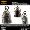 アメリカ製ガーディアンベル社製ガーディアンベルです。 MADE IN USA アメリカ製 交通安全 魔除け 御守り ガーディアンベル アメリカのライダーの間には、事故や、転倒の原因は「道路にひそむ悪魔」によるいたずらだという伝説があります。悪魔は走る者に悪戯やトラブルを運んできます。このベルは美しい音色で悪魔たちを追い払うと言われ愛されています。そんな悪魔のいたずらを防ぎ、御守りとなるのが、守護者のベルという意味を持つガーディアンベル。 日本でも鈴の音(ね)は神道では魔除けの音と言われています。ピューター製の鈴でいい音色でガーディアンベルはデザインも様々あります。 またガーディアンベルにまつわる伝説として、プレゼントとして送られたベルの効果は、自分で手に入れたものの2倍になると言われています。 それゆえに彼氏・彼女・友達・家族へのプレゼントとしての人気も非常に高まっています。 シルバーアクセサリーのようにおしゃれに装着できて素敵な音色を奏でるガーディアンベル。 バイカー以外にも自転車や旅・交通安全のお守りとしてお使いいただけます。 カバン・ランドセル・キーホルダー・ペットの首輪等に付けてお使いください!! ※タイラップ等でバイクのフレームにも簡単に取り付けできます。 アメリカンモデルだけではなく、旧車ファン、レプリカライダーまで、さらにバイクだけでなく、自転車や車にもピッタリな御守りとなっています。 アクセサリーとしても人気で、アイディア次第で車体だけでなく、キーホルダーや鞄など、どこにでも付けておしゃれに楽しめます。