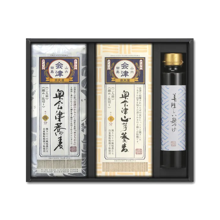 奥会津山芋蕎麦200g×3束 奥会津蕎麦  200g×3束 めんつゆ180ml 包装・のし掛けも可能です。 別途紙袋をおつけいたします。