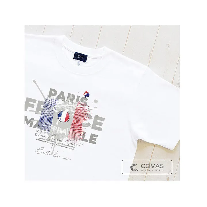 ”FRANCE” フランスをダイレクトにデザインしたTシャツ。 国旗の配色や主要都市、国歌などを記しています。 トリコロールでさりげないお洒落をお楽しみください。 綿100% 6.2オンス・ヘビーウエイト天竺生地・コーマ糸使用 プリント方法:ダイレクトインクジェットプリント ★ワンランク上の品質★ ホワイトTシャツは透け感や肌着っぽさを無くするために、 他社でよくある5.6オンスのヘビーウエイト生地ではなく、 ワンランク上の高品質でしっかりした6.2オンス・コーマ糸生地を使用。 衿リブは洗濯を繰り返しても伸びないしっかりした作りになっています。 【XS】 身丈56 身幅42 肩幅38 袖丈15cm  女性小さめ 【S】 身丈62 身幅46 肩幅42 袖丈18cm  女性標準〜大きめ、男性小さめ 【M】 身丈67 身幅51 肩幅47 袖丈21cm  男性標準 【L】 身丈70 身幅55 肩幅50 袖丈22cm  男性大きめ 【XL】 身丈73 身幅58 肩幅54 袖丈23cm  男性特大 ※サイズ表記はメンズサイズの表記になっています。 商品キーワード: フランス FRANCE 代表 代表チーム オリンピック ワールドカップ 応援 フランスTシャツ  Tシャツ Tシャツ ティーシャツ メンズ レディース メンズTシャツ レディースTシャツ 大人 ユニセックス 男女兼用 男性 女性 トップス カットソー 半袖カットソー 半袖Tシャツ 半袖T 半袖 カジュアル プレゼント 父の日 クルーネック デザイン デザインTシャツ イラスト イラストTシャツ グラフィック グラフィックTシャツ プリント プリントTシャツ 綿 コットン 綿100% ヘビーウエイト 雑貨店 厚手 人気 おすすめ 数量限定 XS SS LL XL Tシャツブランド コバス コバスグラフィック COVAS GRAPHIC COVASGRAPHIC