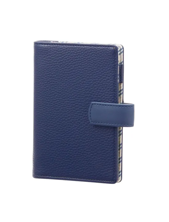 【合皮と柄生地の組み合わせがアクセント】 キーワードトレンド システム手帳 ポケットサイズ ネイビー