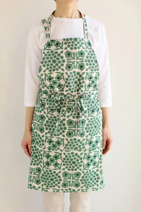 〈日本製〉綿麻プリント ショートエプロン 2 グリーン
