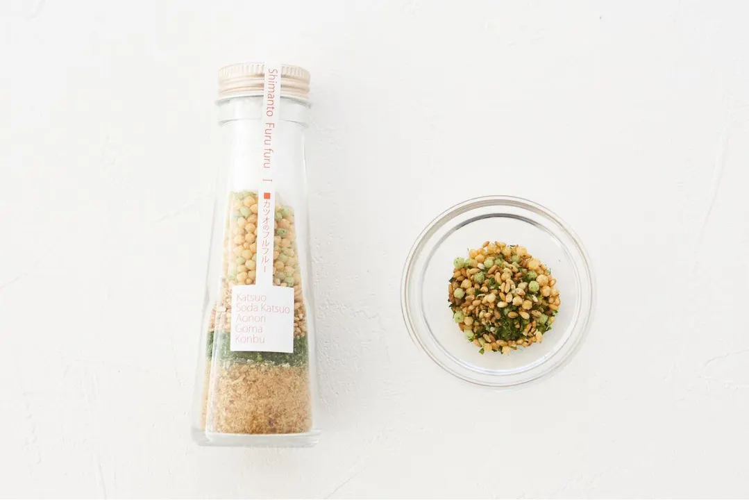 かつお削りぶし(国産)、そうだかつお削りぶし(土佐清水産)、白ごま、赤しそふりかけ、昆布、あられ、食塩、青のり (イタリアン)にんにく、乾燥玉ねぎ、チリペッパー、バジル、ブラックペッパー、かつお削りぶし、そうだかつお削りぶし、パプリカ、食塩、植物油脂