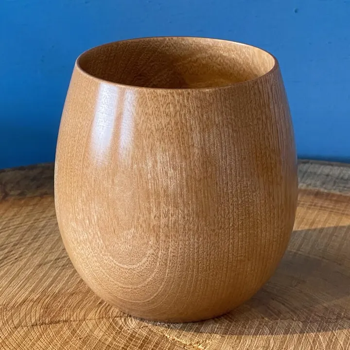 形と容量にこだわり作りました。熱い物にも冷たい物にも是非。丁度よいサイズ感で様々なシーンで活躍するカップです。 「日本の木が持つ美しい木目を楽しんでほしい」 「お手入れも簡単にしていただきたい」 という想いから、撥水性が高く汚れのつきにくいナノグラスコーティングという無色透明な塗りを施しています。 ※木の自然で個性豊かな表情を活かして製作しておりますので、 木の節(ふし)やあざのあるものもございます。ご了承くださいませ。