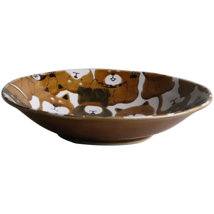 1枚のお皿の中に、柴犬・土佐犬・秋田犬と日本の犬種が大集合。 釉薬と撥水の組み合わせで、より可愛らしい雰囲気に仕上がりました。 軽量で普段使いもしやすい器です。