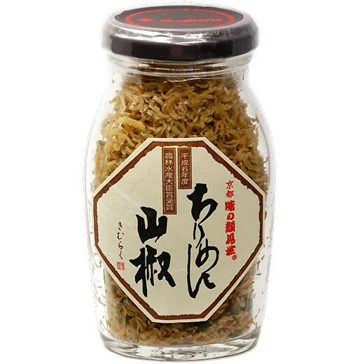 国内産の上質な選りすぐりのこすじちりめんと、香り豊かな和歌山産の実山椒をあしらい、淡口醤油でカラッと風味よく炊き上げています。 職人が、手作業でちりめんじゃこを丁寧に選別、原料により火加減、炊き上がりの時間を調節する等、愛情と手間をかけて一鍋、一鍋心をこめて製造しております。 ちりめんじゃこの柔らかな食感と、ピリッと痺れる山椒の爽やかな風味が食欲を刺激します。 酒の肴、おにぎり、温かごはんに最適です。 3年連続(2007・2008・2009)モンドセレクション金賞を受賞、 平成6年度全国水産たべもの展にて農林水産省大臣賞を受賞ちりめん山椒 80g瓶