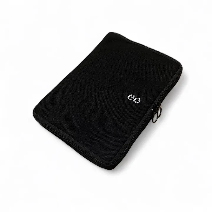 眼鏡とサングラス、たくさんお持ちの愛好家さんに朗報です。 お気に入りを5本まとめて収納・持ち運びできるGOODなケースができました。 コットンキャンバス生地のソフトケースで、内側は総ベロア生地仕様になっているので しっかり眼鏡やサングラスを保護してくれます。 蓋裏のメッシュポケットに眼鏡拭きやクリーナーも収納でき、背面にはパラコードループが付いているので、 別売りのストラップを掛ければショルダーポーチにもなる優れもの。 眼鏡を模した、2つ並んだナットの刺繍がアクセントになっています。