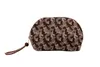 超軽量ポーチ!/西陣織シルク・シェル型ポーチ・京組紐引手・迷彩グレンチェック・レディース・日本製 ブラウン迷彩