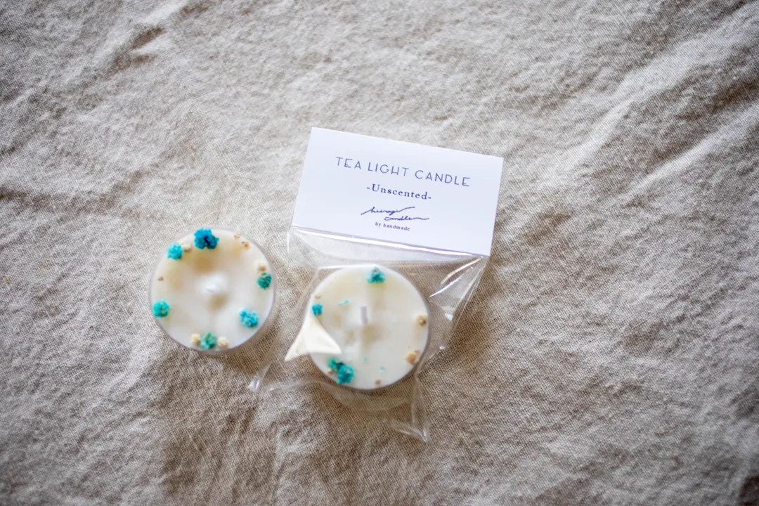 こぼれ花のティーライトソイキャンドル かすみ草(ブルーグリーン)と無香料