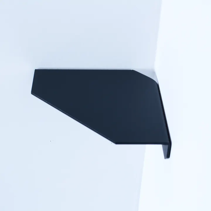 壁が息づく、鉄と暮らす。 TETUTOシリーズ corner shelf アイアン素材のコーナーシェルフ ミニマルデザインと使いやすさに 1mm、1°以下までこだわりました。 ///シンプルアートに、美しく暮らす。/// シンプルの中に、アートを感じるミニマルなデザイン。 空間が息づく鉄と、美しい暮らしを。 ///まるでカフェのような空間/// 2.6mmの厚鉄が放つ重厚感は、 落ち着きを感じさせてくれます。 ///電源コードを通せます。/// 壁の角とコーナーラックに30mm×30mmの 三角開口加工を施しています。 これにより電源コード、充電ケーブルなどを 後ろから通して頂けます。 ///スクエアな削り出し加工/// 前面は大きく94mmで削り出し、 下部分の角はすべて10mmで削りました。 どんなお部屋でも馴染むバランスの取れたスクエアなデザイン。 職人技で丁寧に仕上げます。 ///コインで簡単取り付け/// 壁を傷付けにくい 石膏ボード専用のピンを コインで押して簡単取付。 3本のクロスでガッチリ固定するので 安定感は抜群です。 ピンを抜いて取り外し可能なので どこでも何度でも設置できます。 最後にキャップをはめて設置完了です。 ///国際品質規格認証工場で熟練職人が作る。/// 2.6mmの厚鉄から 切り出し、曲げて、削る。 表面は、極細凹凸塗装で、 上質な「くすみ」を放つ。 角は、手作業で削る、 手に馴染む丸み。 国際品質規格認証工場の、 たしかな職人技で、 手間と時間を惜しまず、ひとつづつ作る、 made in Japan品質です。 いつまでも見ていたい、 触れていたい。 そんな鉄のある暮らしを。 心を込めて。