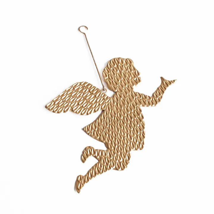 クリスマスのオーナメントには欠かせない存在の天使。 表面に凹凸をつけるエンボス加工を表面に施しているので、陰影が出来て立体感のある表情が生まれます。 ツリーに飾ったり、壁やフックに飾って楽しむ以外に、プレゼントのラッピングに添えてギフトと一緒にプレゼントとするのもおすすめです。 クリスマスが終わっても子供部屋などインテリアに。 ブリキ(BLIK)は、錫(TIN)でメッキを施した鉄板で、錆びないように薄いスズの膜で鉄板を処理し、表面を織り上げたものを指します。 ブリキ素材は、美しい表面と強固な耐久性を持つため、家具や装飾品などの家庭用品としてよく用いられます。 また、オイルやペイントなどで仕上げることで、手触りも良くなり、防水や防塵の性質も備えています。 職人によるハンドメイドで生産しています。 【インテリア】【雑貨】【クリスマス】