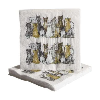 ネコが集まるナプキンは、ピクニックやパーティーにピッタリ。 サイズ:33x33cm