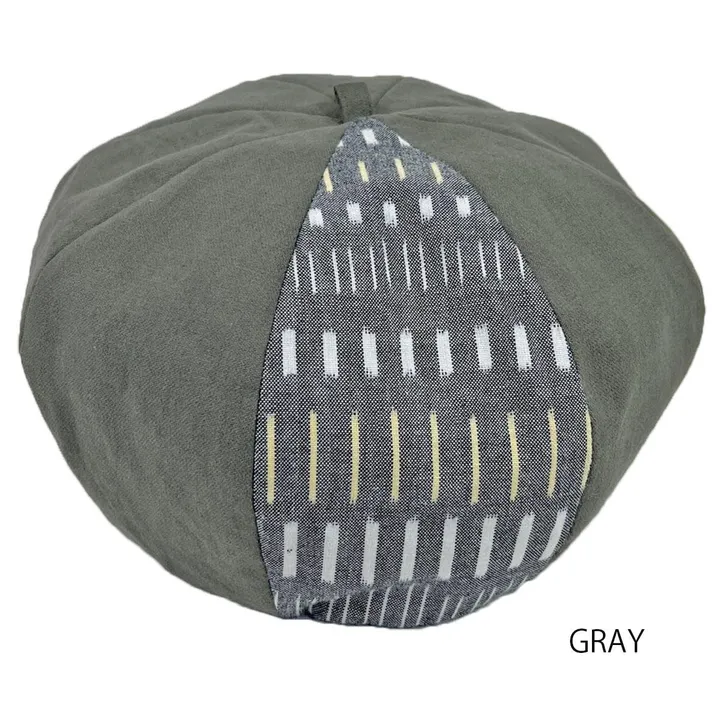 【久留米絣】ボディの一部に福岡県の筑後地方一帯で製造されている 伝統的な木綿織物 「久留米絣(くるめがすり)」を使用しています。 ハヘンタイラベレーボウ 8パネルの大ぶりなベレー帽 パネルの一枚に久留米絣を使用しております。 淡いピンク、イエローのストライプが混ざった可愛らしい模様です。 【ユニセックス】男女兼用でご使用いただけます。 年齢、性別を問わず幅広いファッションにあわせられるので、自分用はもちろん、プレゼントにもおすすめです。 【サイズ調整】内側のアジャスターでお好みのサイズに調整可能です。 ご家族や親子での共有も◎