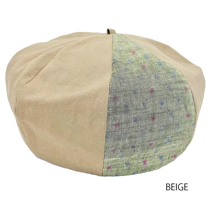 【久留米絣】ボディの一部に福岡県の筑後地方一帯で製造されている 伝統的な木綿織物 「久留米絣(くるめがすり)」を使用しています。 ハヘンタイラベレーボウ 8パネルの大ぶりなベレー帽 パネルの一枚に久留米絣を使用しております。 淡いピンク、イエローのストライプが混ざった可愛らしい模様です。 【ユニセックス】男女兼用でご使用いただけます。 年齢、性別を問わず幅広いファッションにあわせられるので、自分用はもちろん、プレゼントにもおすすめです。 【サイズ調整】内側のアジャスターでお好みのサイズに調整可能です。 ご家族や親子での共有も◎