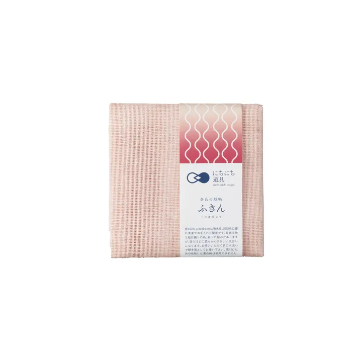 速乾性に優れ、お手入れも簡単な蚊帳生地は台所用品に最適です。使うほどに手になじみ、暮らしに彩りを添えるふきんです。おろしたての蚊帳生地は糊がついた状態ですので、一度ぬるま湯で洗い落としてください。