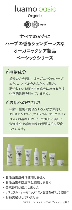 ルアモ ベーシックはナチュラル・オーガニックコスメ NATRUE認証取得の全ての年代の方のためのジェンダーレスなBIO&VEGANパーソナルケアブランドです。