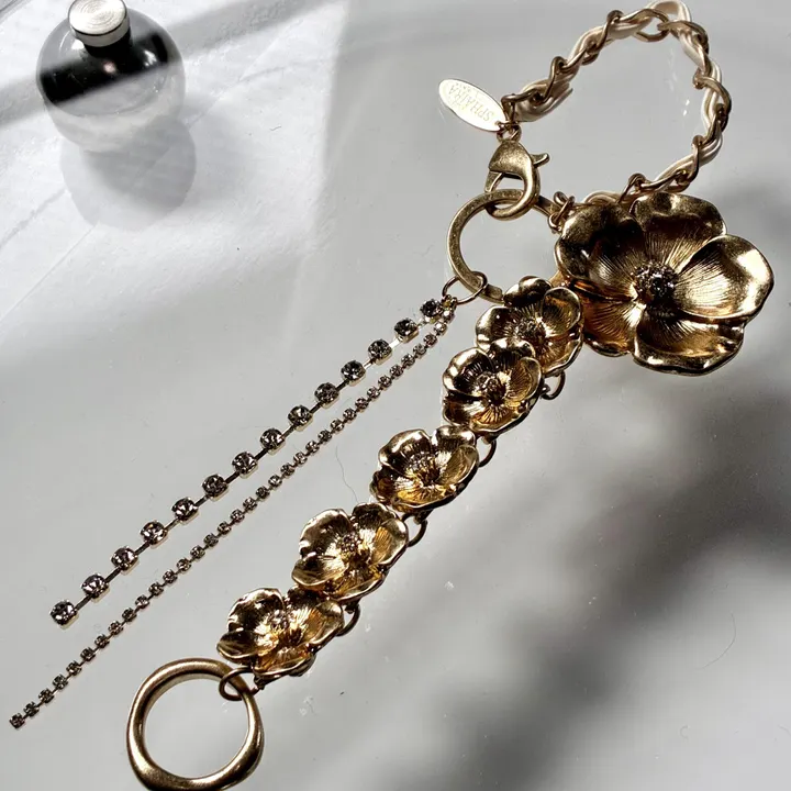 フラワーモチーフ メタルチェーン バッグチャーム ゴールド