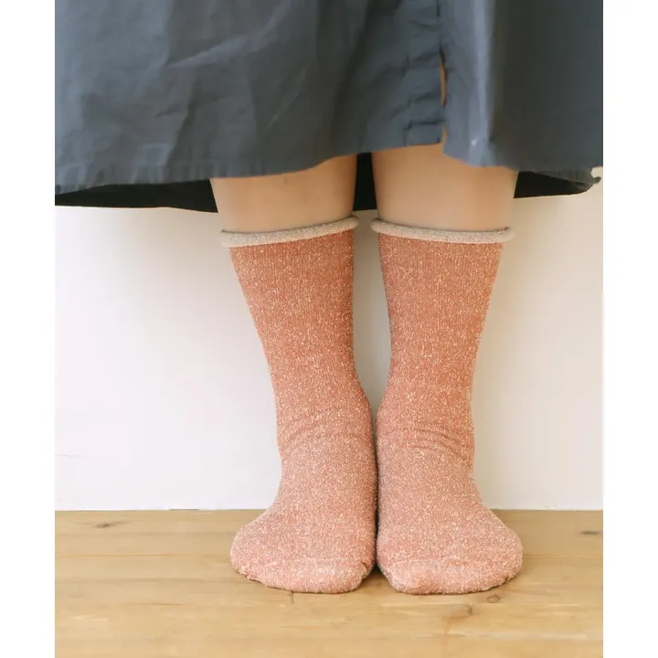 【1Pソックス】内側シルク ゴムなしクルーソックス【レディース】 66 レンガ Sサイズ:22.5-24.5cm