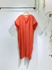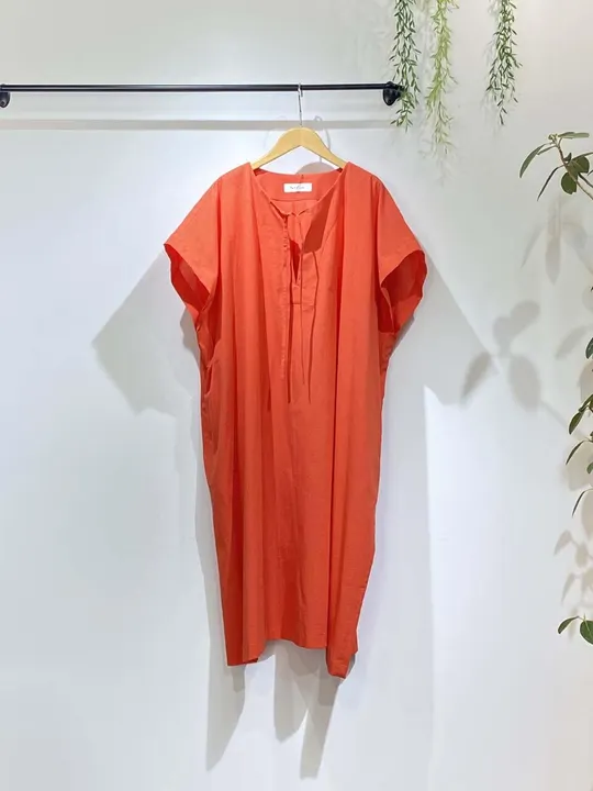 リラックスムード漂うカフタンワンピース。 ゆったりとしたサイズ感と長すぎない丈感で、レイヤードスタイルにおススメです。 深く開いたキーネックでコーディネイトに抜け感をプラス。 GOTS基準クリアしたオーガニック原料を100%使用し、 タテ糸ヨコ糸共に強撚を施した清涼感のあるジョーゼット生地です。 特殊な加工方法で染色することで、特徴的なソフトな風合いに仕上げました。