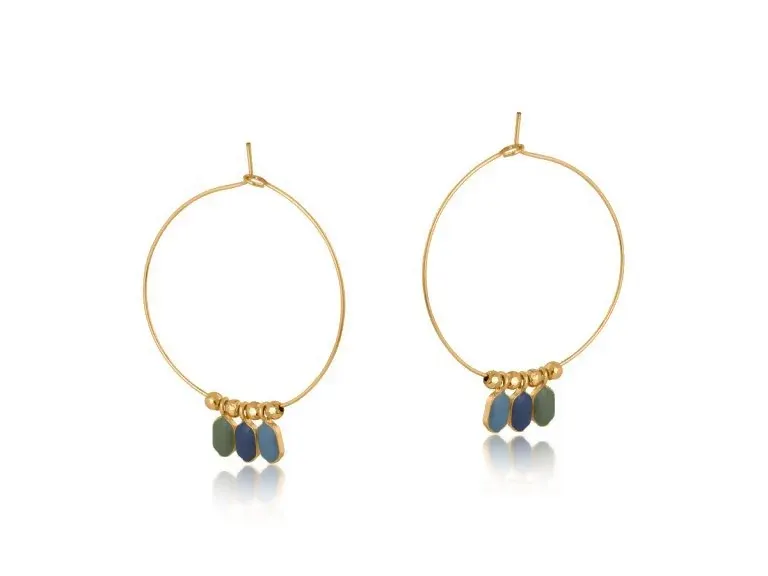 3138 カリーヌドロップフープピアス Blue
