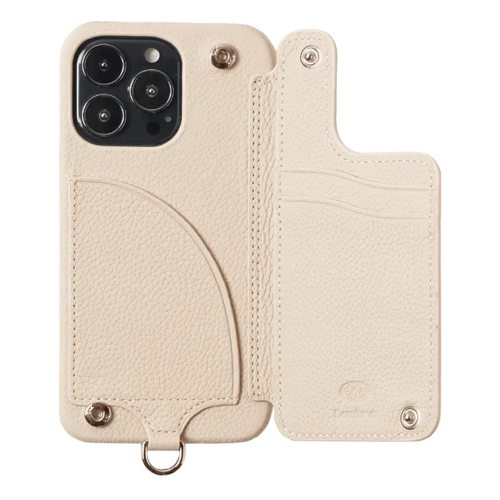 2023年9月より弊ブランドはDemiurvo(デミウルーボ)改めDEMIU(デミュウ)に改名いたします。 それに伴い、DEMIUの名を配したブランドネーム・ロゴが採用されます。 一部商品に関しては、Demiurvoとして引き続き販売いたしますが順次モデルチェンジ予定です。 何卒、ご理解のほど宜しくお願い致します。 カラー豊富なカード収納機能つきiPhoneケースPOCHE FLAT(ポシェフラット)。 選び抜かれた上質なフランス産牛革を使用したiPhoneケース。 本革を使用しているため、ひとつひとつとして同じ革がないところも魅力。 思わず目を惹かれるカラーと質感で存在感抜群のアイテムです。 右扉の内側に2段のカードスリットと隠しポケット、左側に収納ポケットを施しカードケースとしての機能を備えた便利なアイテム。 蓋をささえにして横置きできるのでYouTubeやテレビ会議にも便利。 ショルダーなどを付けられるリングが付いているので、別売りのショルダーストラップとのセットや色違いのストラップでコーディネイトするのもおすすめです。 ※iPhone12 miniおよび13miniの背面のカード入れに関してですが左側(ケース装着側)の仕切り部分と、右側の裏ポケットにはカードはお入れいただけません。右側のカード入れにはカード段が1つの仕様となります。ご注意ください。 ※ストラップは別売りです。 ー仕様ー・素材本体:牛革ケース部分:ポリカーボネート金具:ニッケル・重量約70g