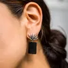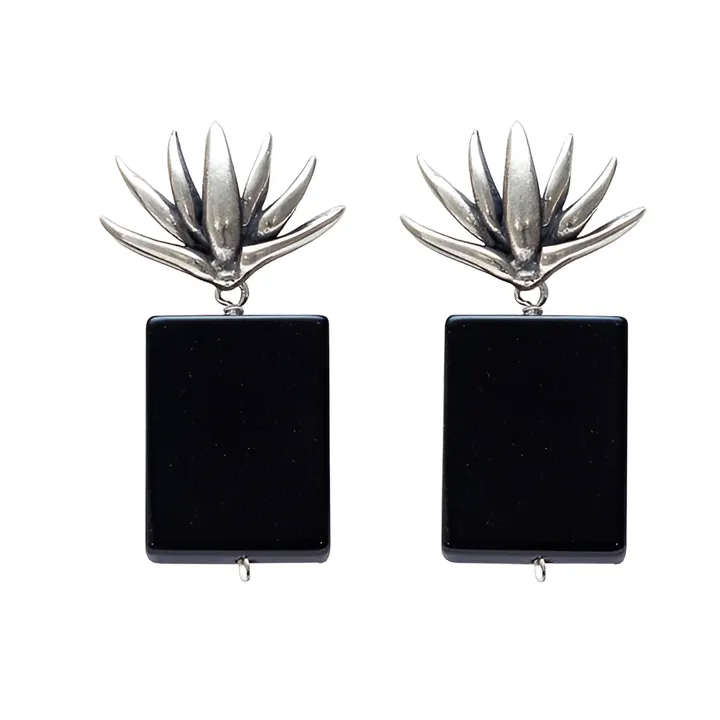 ふっくらとした立体的なアガベと長方形にカットされたオニキスのポストピアス 漆黒のオニキスがシャープで大人っぽい印象のピアスです