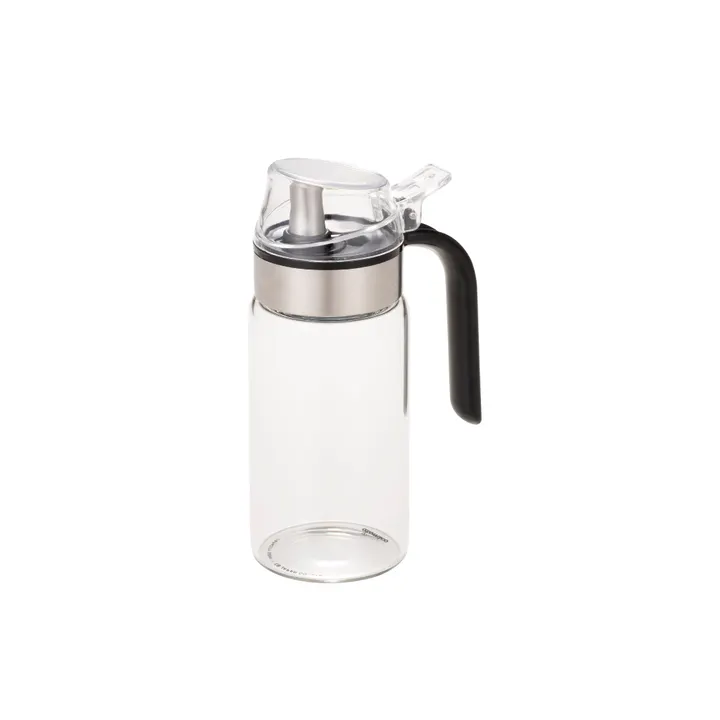 【ワンタッチで簡単に油が注げる『耐熱ガラスオイルボトル M/L』】 調理中も食卓でも片手で簡単に油が注げる『耐熱ガラスオイルボトル M/L』。 液垂れしにくい注ぎ口なので油でベタベタしにくく、お手入れも簡単です。ハンドルは太めなABS樹脂製なので持ちやすく注ぎやすい形状。 耐熱ガラス製のスタイリッシュなデザインなので、食卓やキッチンにそのまま置いておいても様になります。 【片手で開閉出来るフタ付き】 空気の侵入を減らし、酸化を防いでくれるフタ付き。フタは片手で開けられるので、簡単に油が注げます。 【使い勝手を考えたこだわりの構造】 垂れた液が溜まらない戻り口付き。太めで持ちやすいハンドル。 本体は耐熱ガラス製で匂い移りや酸にも強く、熱湯消毒も可能です。 本体のみ食器洗浄機も使えるのでお手入れも簡単です。 【どこでも置きやすいスリムな設計】 ボトル本体の直径が6.5cmとスリムな設計。コンロの横や奥など、邪魔にならない場所に置けて使いたいときにはすぐに使えます。 【スタイリッシュなデザイン】 キッチンやテーブルの上に置きっぱなしでも気にならない、デザイン性の高いオイルボトルです。 【製品情報】 商品名: 耐熱ガラスオイルボトル M サイズ: W105×D65×H165mm 重量: 213g 満水容量: 300ml 実容量: 250ml [本体]ほうけい酸ガラス [フタ]ポリスチレン樹脂 [ハンドル部]ABS樹脂、ステンレス鋼 [注ぎ口]ステンレス鋼 耐熱温度差: 120℃ 原産国: 中国 【製品情報】 商品名: 耐熱ガラスオイルボトル L サイズ: W105×D65×H235mm 重量: 290g 満水容量: 500ml 実容量: 450ml [本体]ほうけい酸ガラス [フタ]ポリスチレン樹脂 [ハンドル部]ABS樹脂、ステンレス鋼 [注ぎ口]ステンレス鋼 耐熱温度差: 120℃ 原産国: 中国
