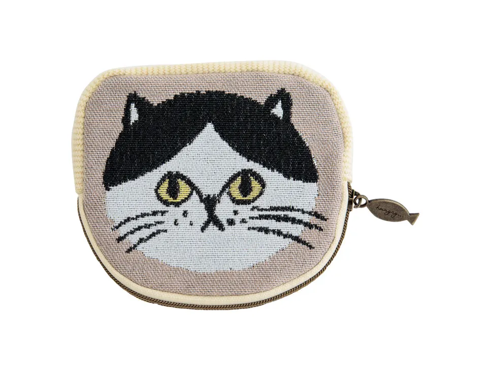 「ネコ好きさん、しゅうごーう!」 ネコ好きさんへ贈る、ネコまみれのシリーズが登場! ネコを愛してやまない方に、おすすめしない訳にはいきません。ネコ愛溢れるアイテムたちです。 インパクト大のお顔ダイカットポーチ。『hungry...』と書かれたお魚の引き手チャームがポイントです。 背面は配色のコーデュロイ生地になっています。 1cm程のマチがあり、小物を入れたりお財布として使うのもアリです。 他のアイテムとセットにしてネコ好きさんへの贈り物にいかがですか?