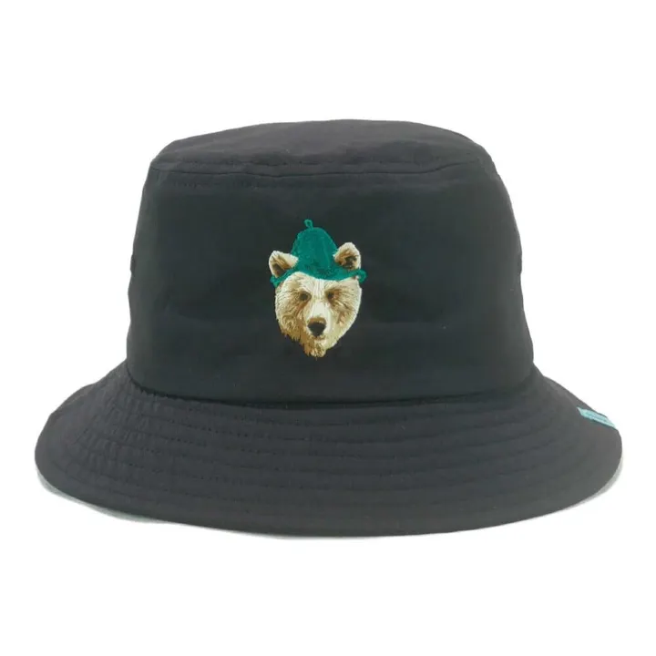 「サウナくま」の刺繍が特徴的な、洗濯ができるバケットハットです。 【サイズ】58cmフリー 【生産地】中国製 【素材・成分】ポリエステル100%