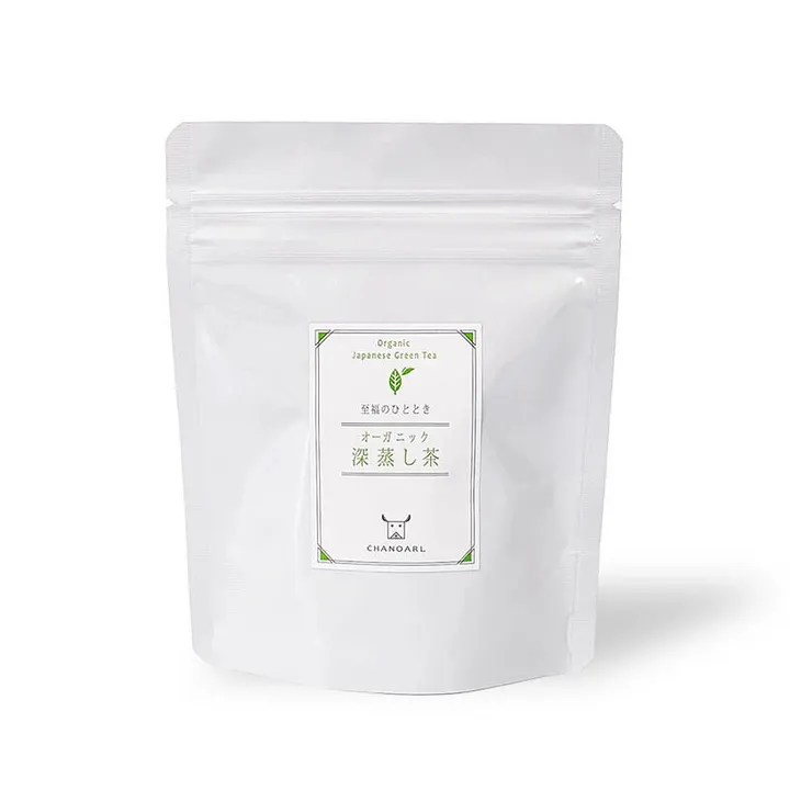 農薬や化学肥料に頼らずに自然の力で育てた良質の鹿児島産一番茶のみを厳選したリーフグレードの国産オーガニック深蒸し茶を贅沢にティーバッグにしました。 通常の2倍の時間をかけて茶葉が細かくなるまでじっくり蒸し上げ、爽やかな香りとコクのある旨味を引き出しました。通常の煎茶よりも渋みが少なくまろやかで、食物繊維、βカロテン、ビタミンE、ミネラルなどの栄養成分も豊富です。 お気に入りのカップにティーバッグを1つ入れてお湯を注ぐだけ。 ティーバッグは抽出性の高い三角テトラ型メッシュタイプ。広い空間の中で茶葉が大きく広がり、急須で淹れたような香りと美味しさがしっかり抽出されます。ティーバッグの素材は、カラダと環境にやさしい植物由来の素材を使用しています。 和食や魚料理はもちろん煎餅からスイーツまで幅広くペアリングが楽しめます。冬はホットで夏は水出しでお楽しみいただけます。 白基調のかわいいパッケージは保存に便利なチャック付き。キッチンやテーブルにさりげなく置いておくだけでオシャレ感UP。ご自身へのご褒美や健康志向の方へのギフトにも喜ばれます。
