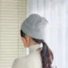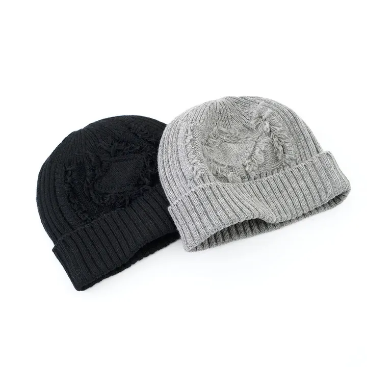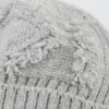 アラン模様を引き立てるカットフリンジのニットキャップ LG