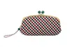 毎日使える伝統工芸財布/西陣織シルク・がま口長財布・親子がま口・京組紐ストラップ付・ギンガムチェック・レディース・日本製 ブラウン系